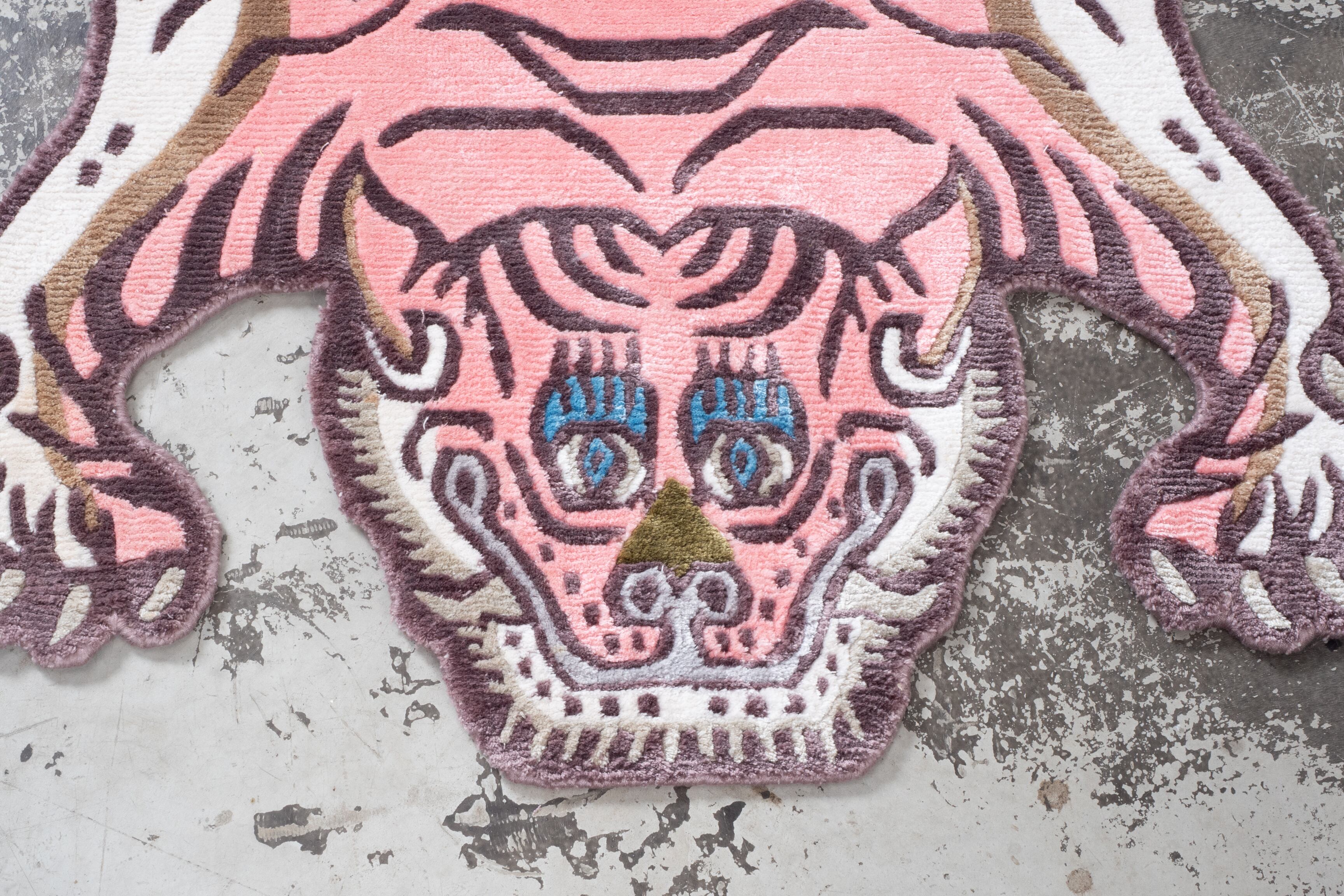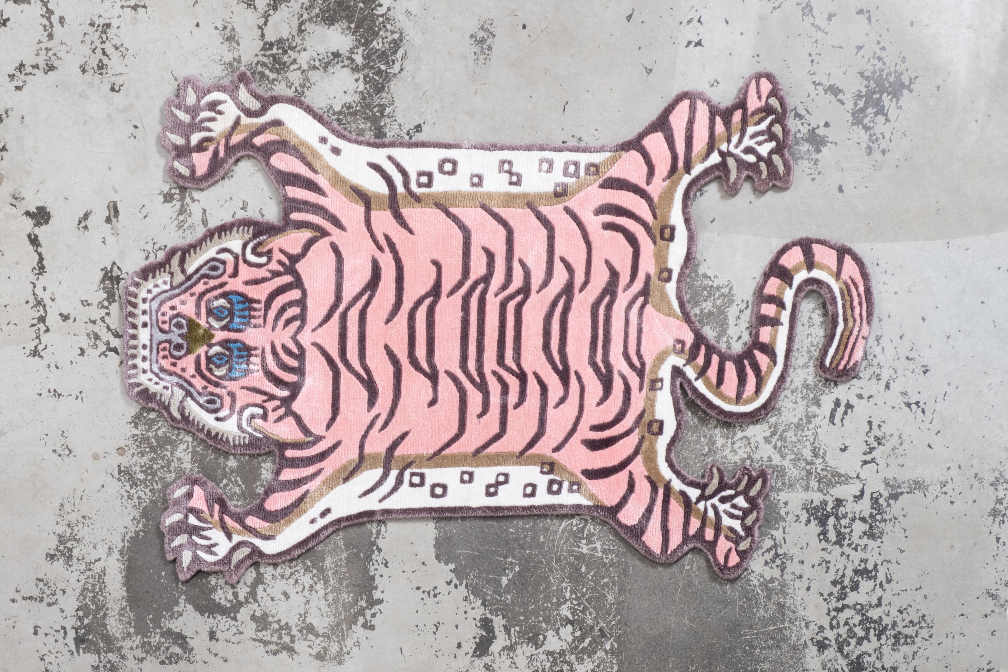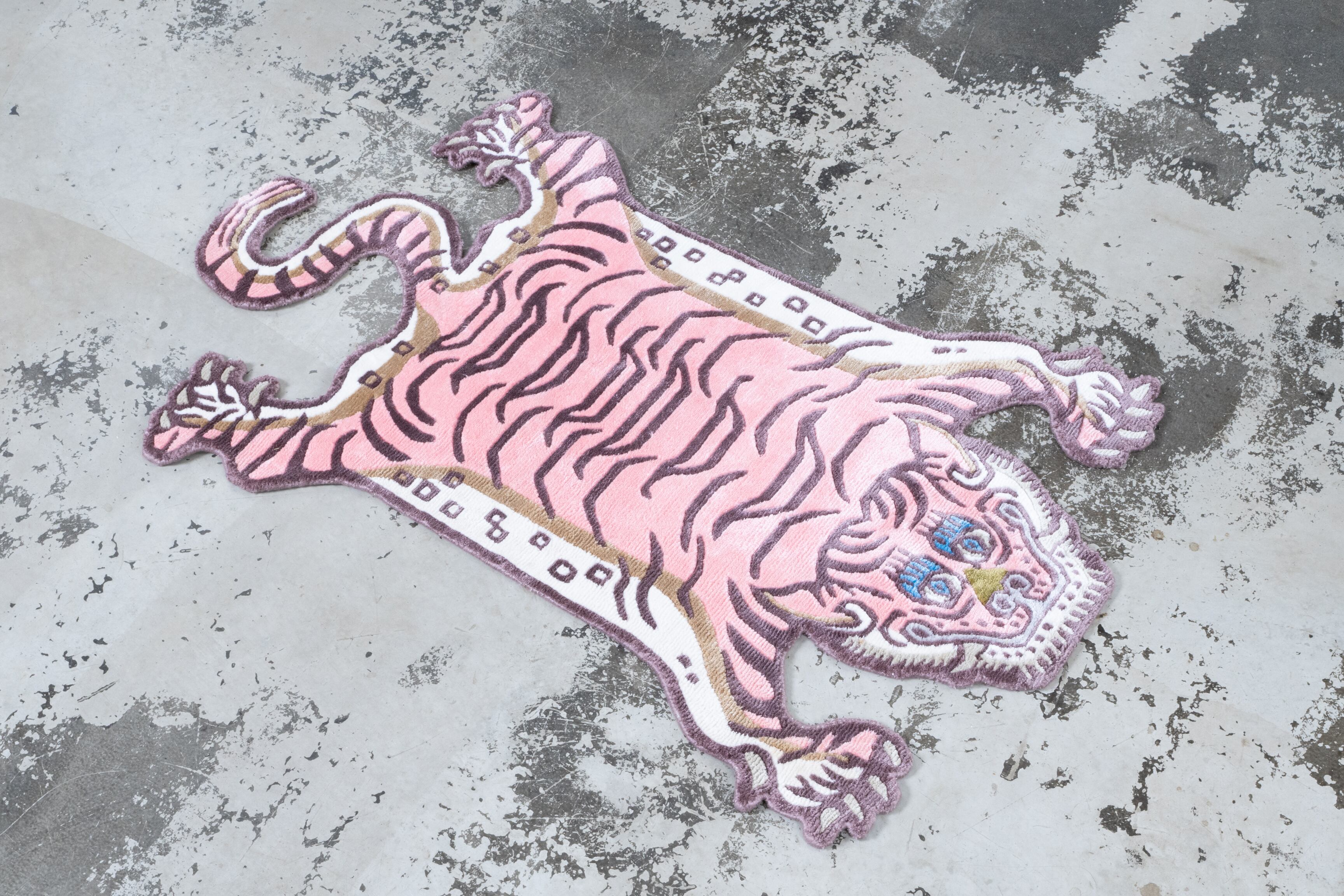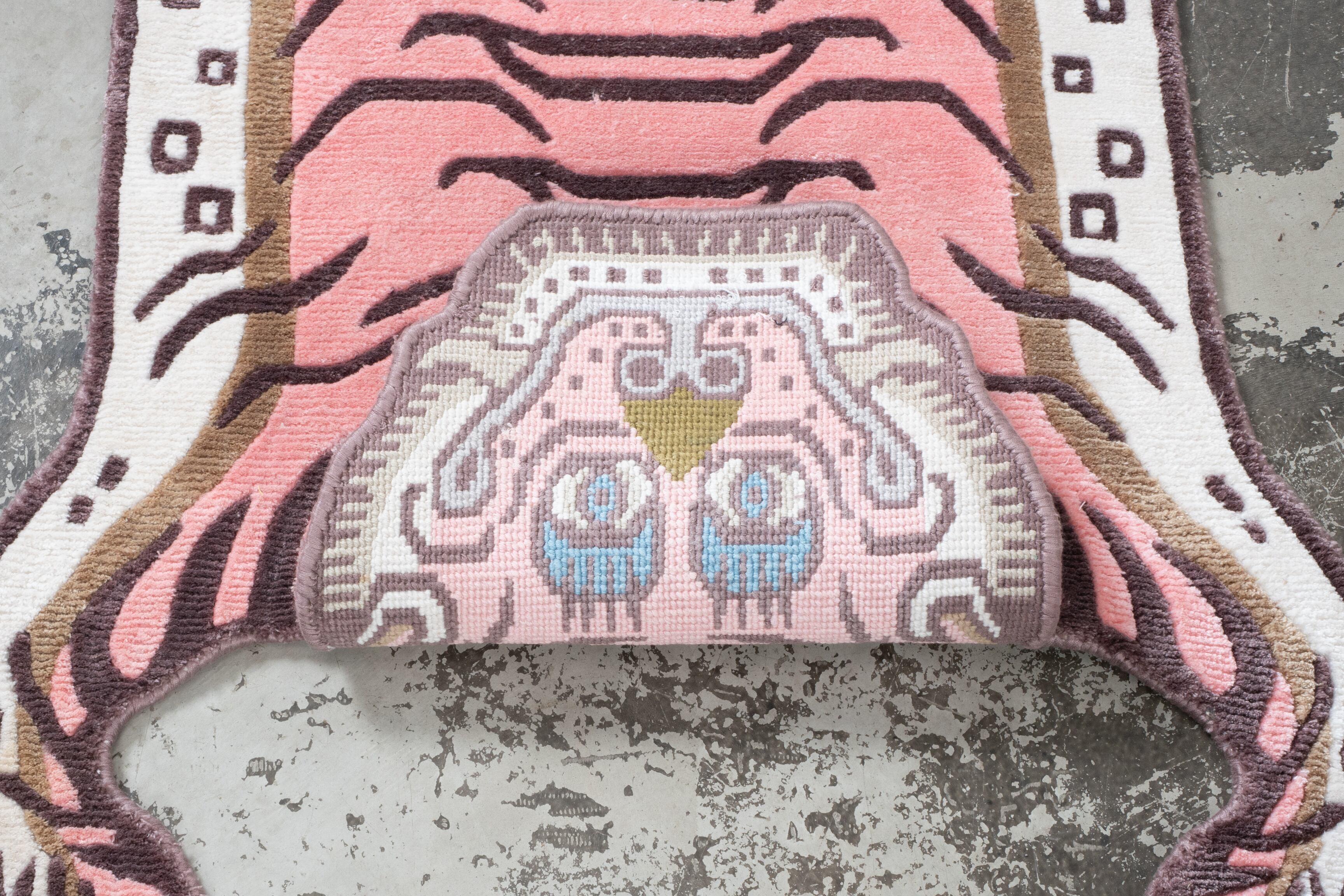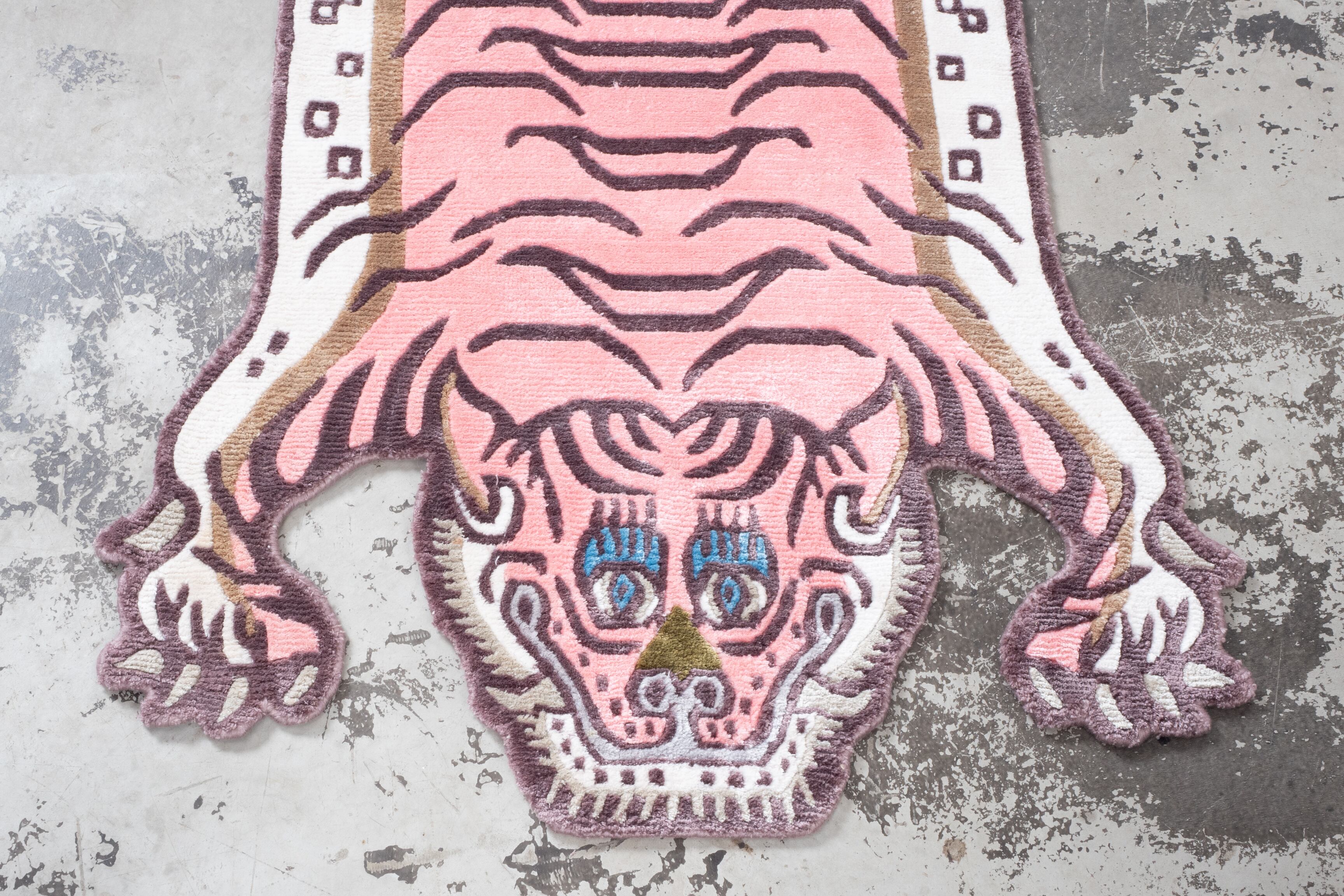 パステルなピンクをメインに据えたラグは、同じ虎の表情でも印象をガラッと変えます。