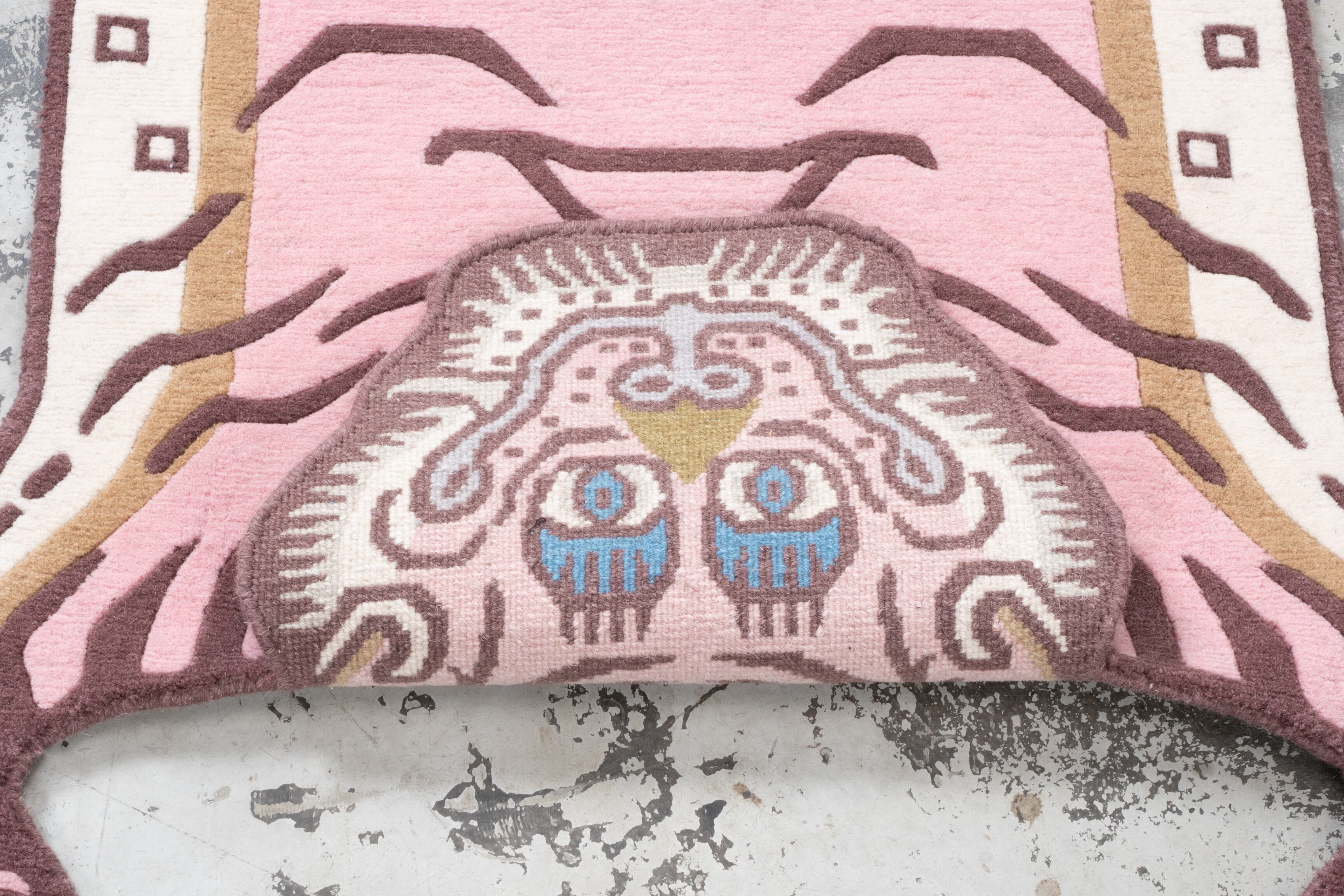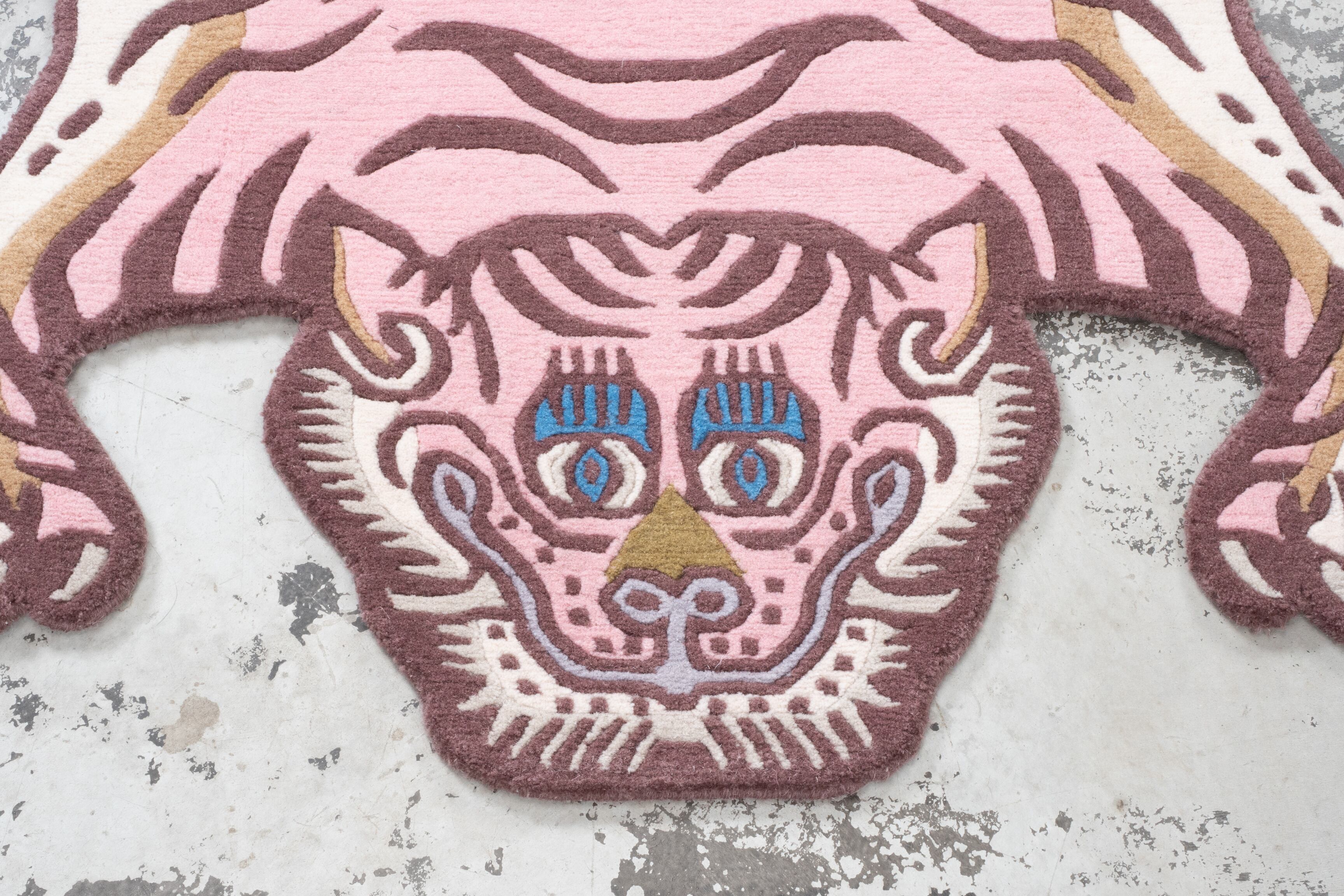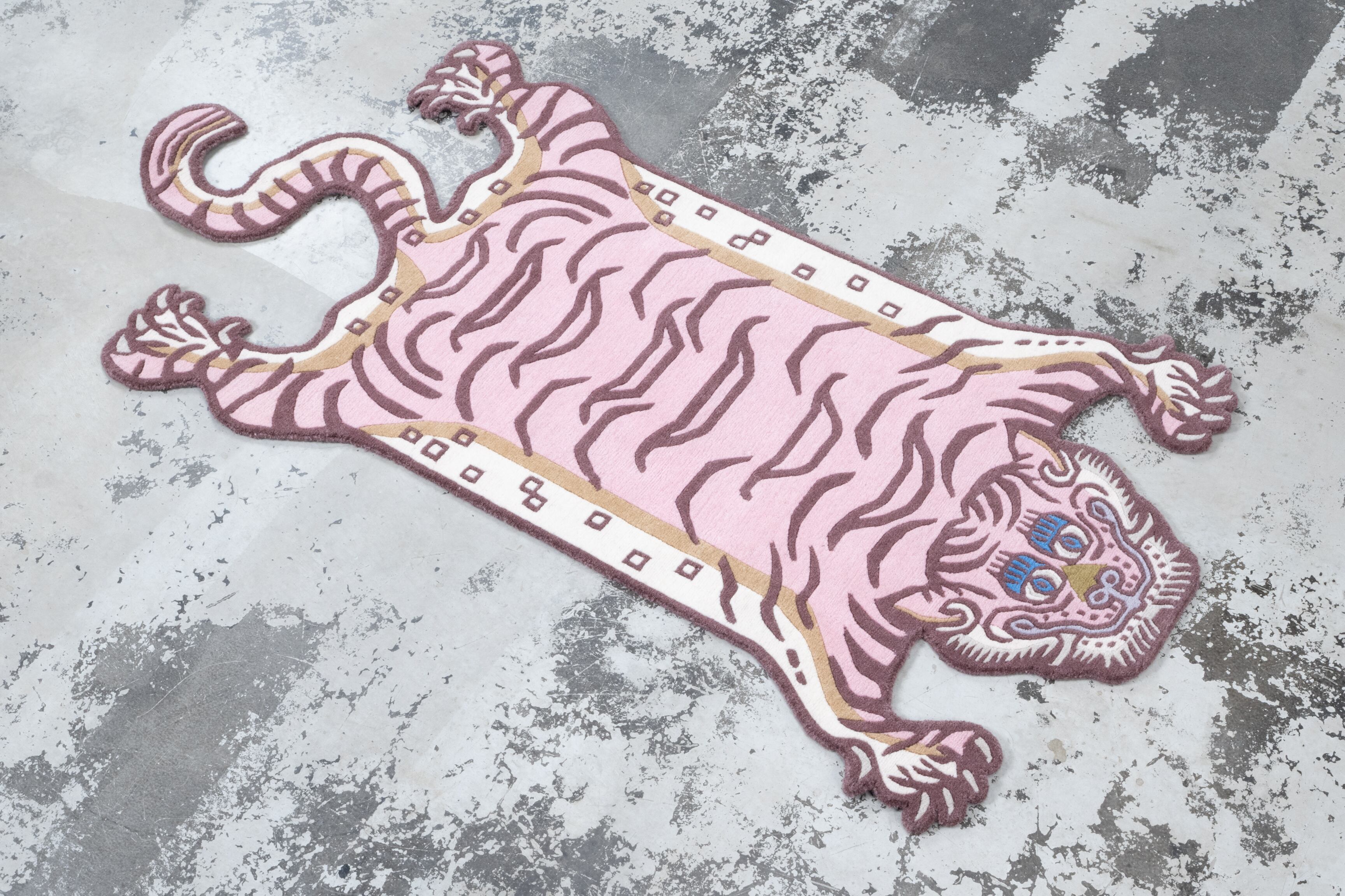 パステルなピンクをメインに据えたラグは、同じ虎の表情でも印象をガラッと変えます。
