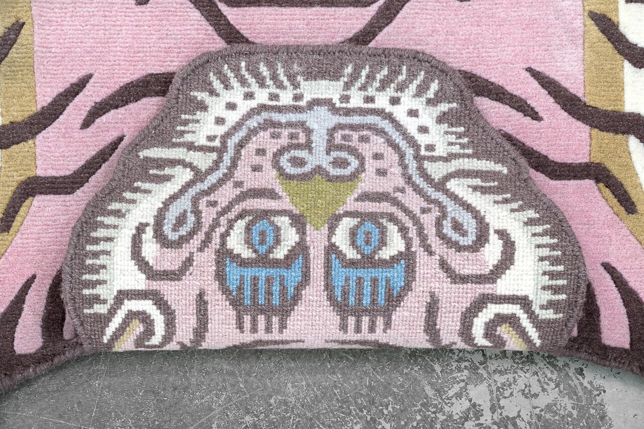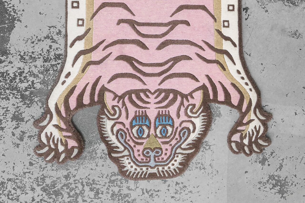 パステルなピンクをメインに据えたラグは、同じ虎の表情でも印象をガラッと変えます。