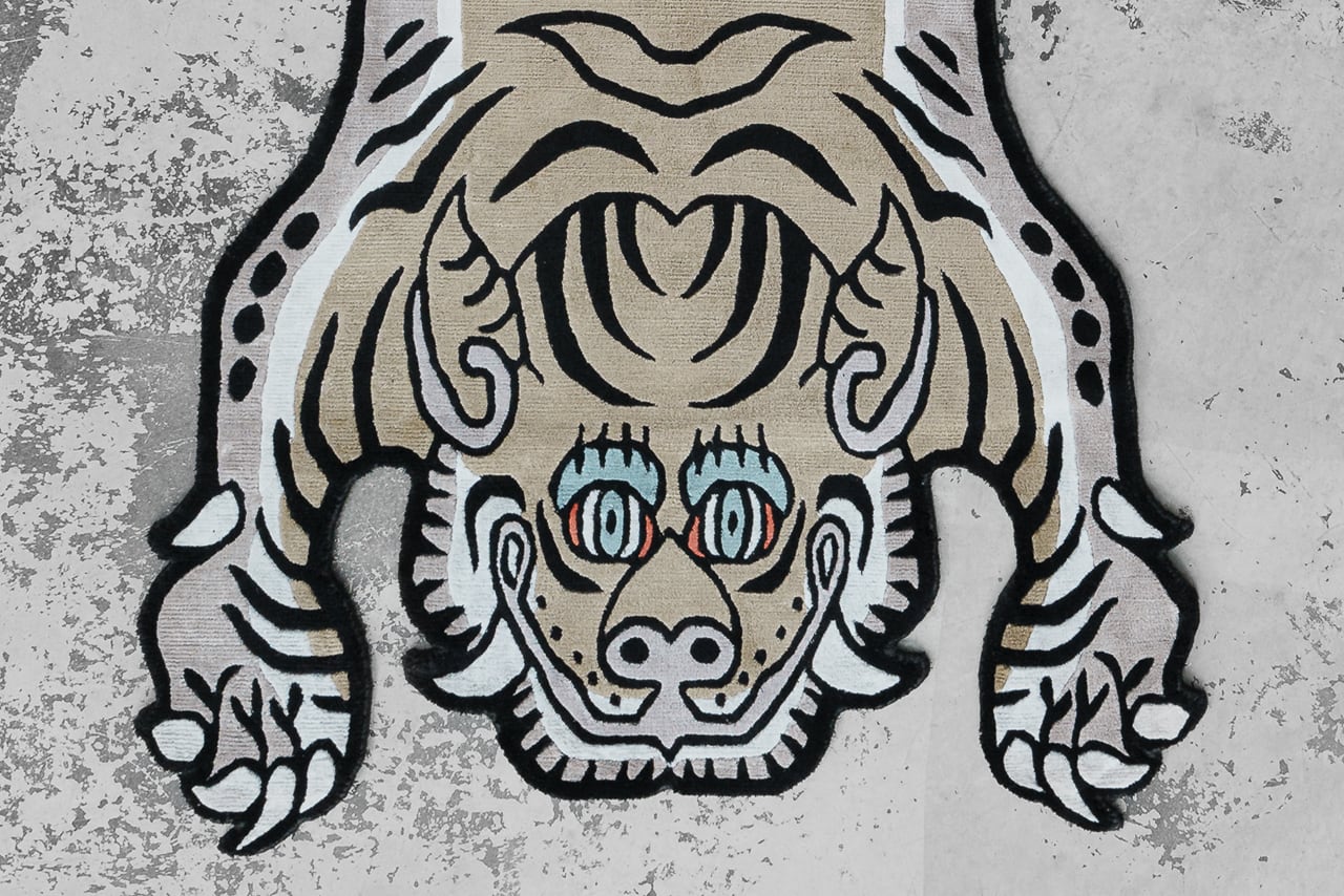 Tibetan Tiger Rug 《Mサイズ•シルク・オリジナル2・マスタードイエロー150》チベタンタイガーラグ