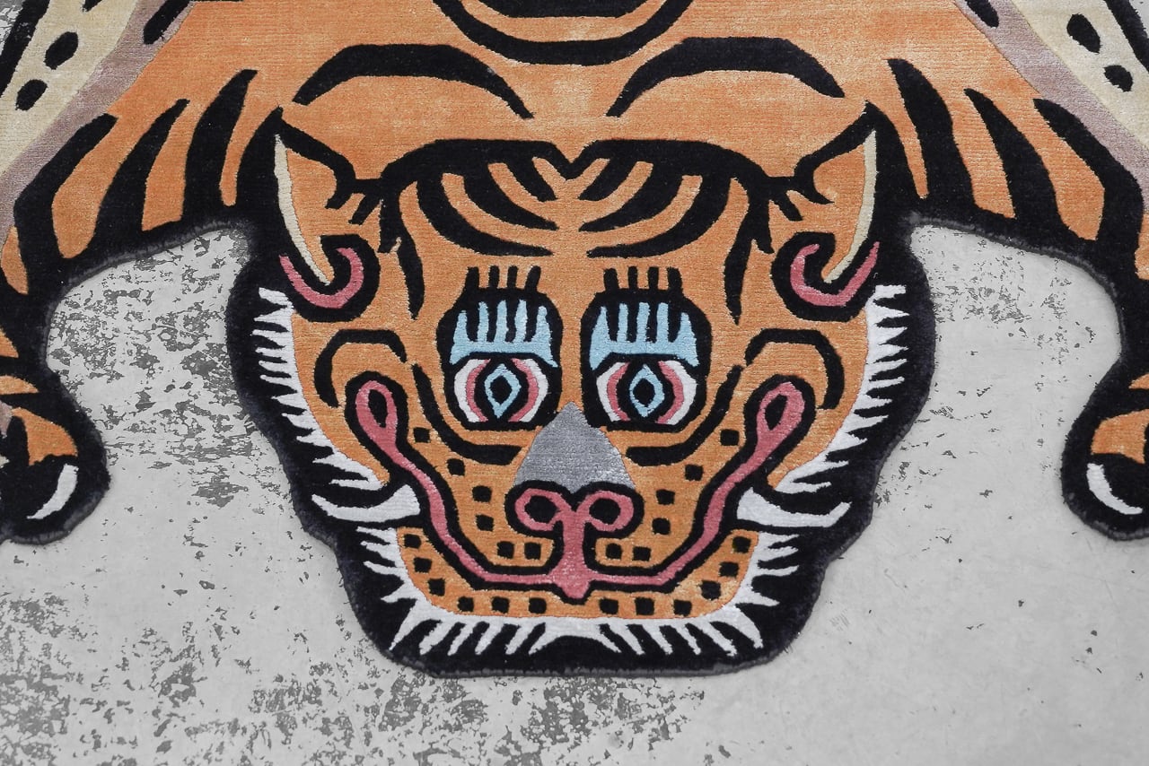 Tibetan Tiger Rug 《Lサイズ•シルク・オリジナル3・トラディショナルオレンジ164》チベタンタイガーラグ