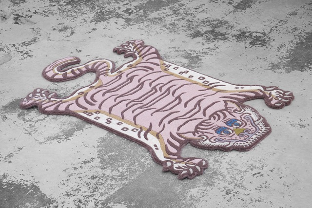 パステルなピンクをメインに据えたラグは、同じ虎の表情でも印象をガラッと変えます。