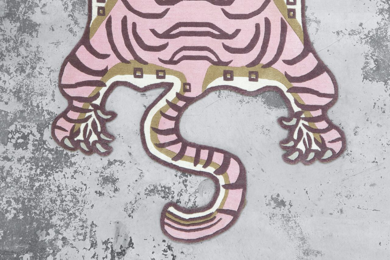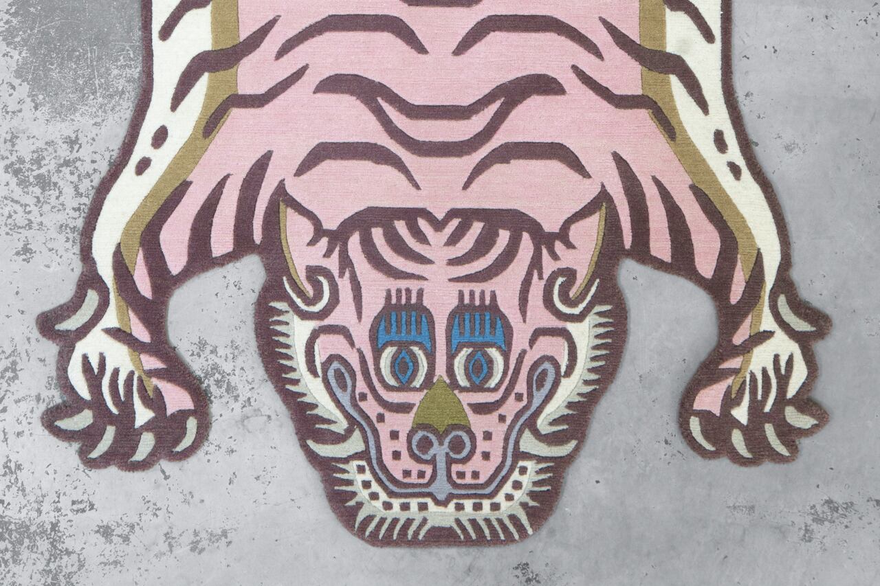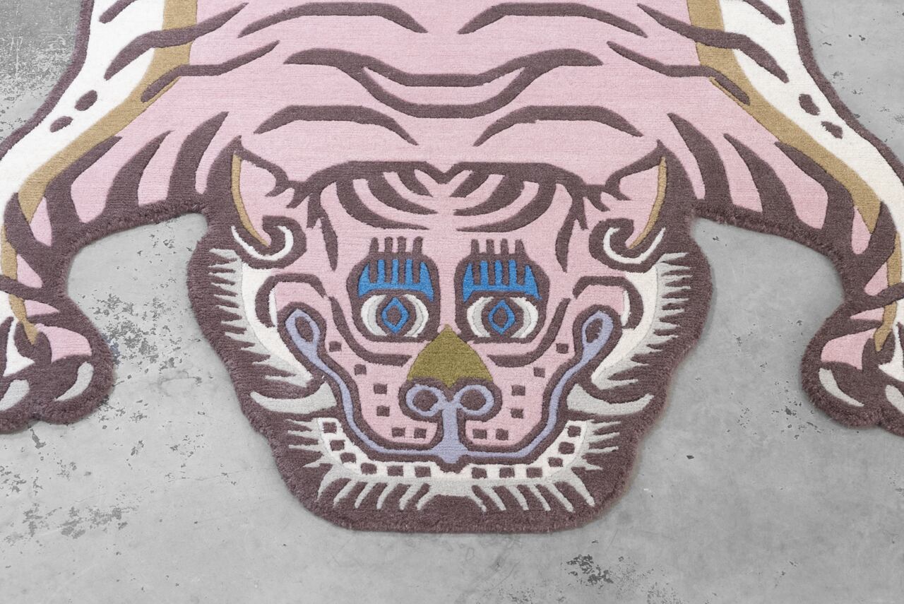 パステルなピンクをメインに据えたラグは、同じ虎の表情でも印象をガラッと変えます。