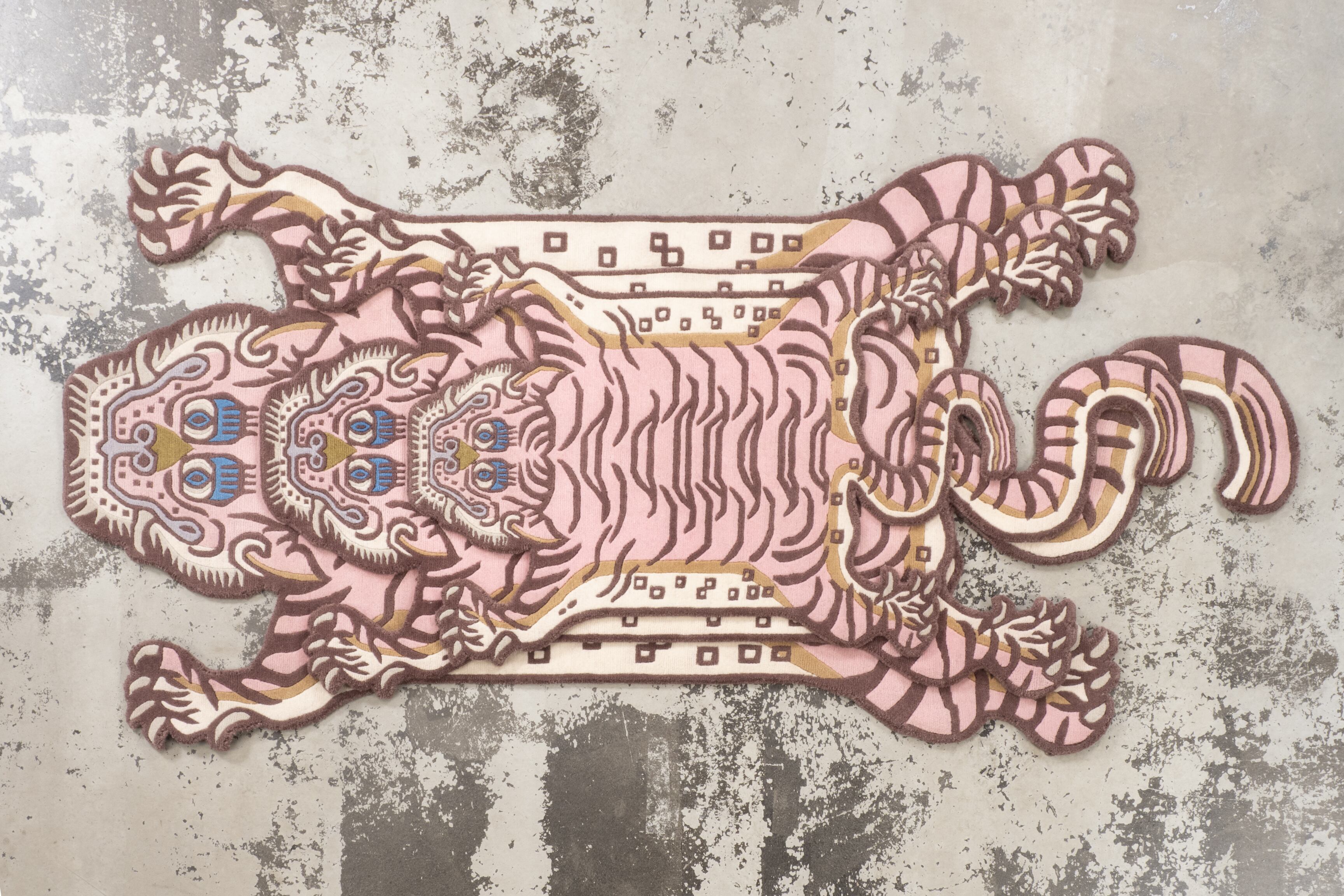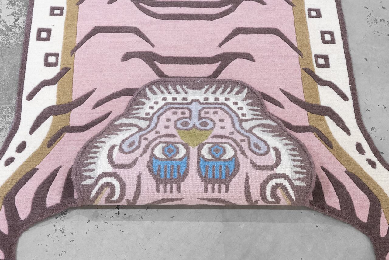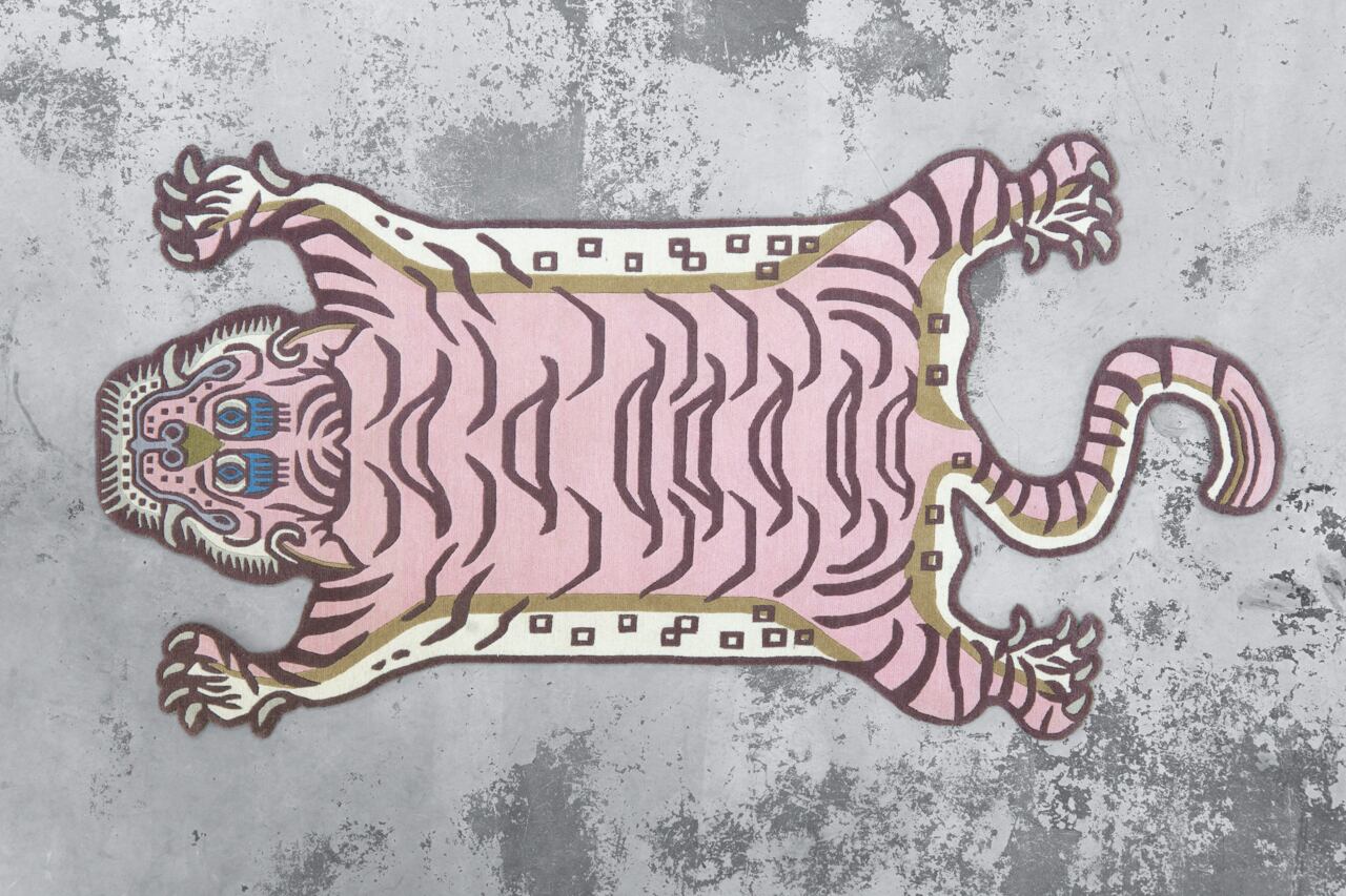 パステルなピンクをメインに据えたラグは、同じ虎の表情でも印象をガラッと変えます。