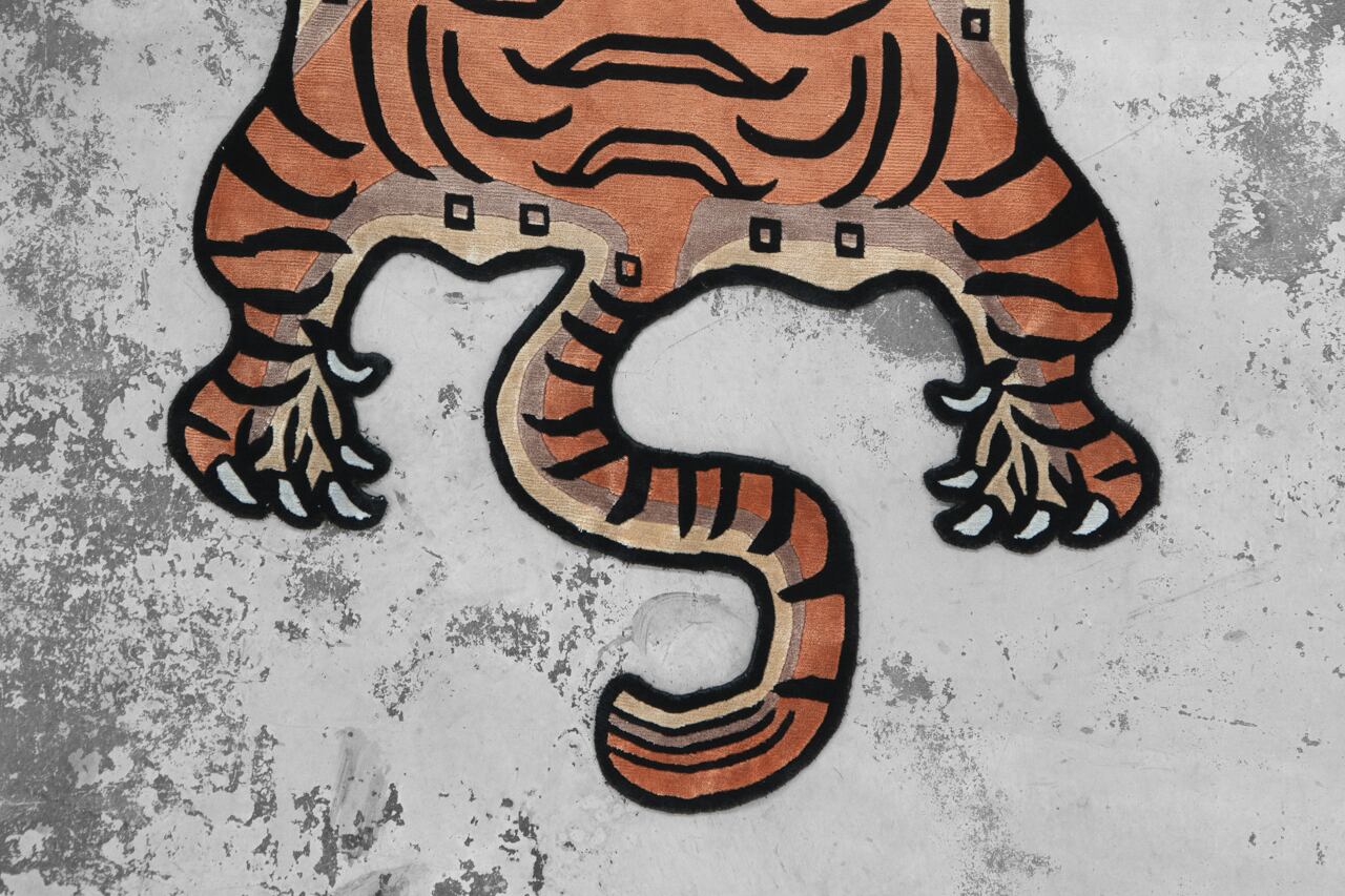 Tibetan Tiger Rug 《Lサイズ•シルク・オリジナル3・トラディショナルオレンジ177》チベタンタイガーラグ