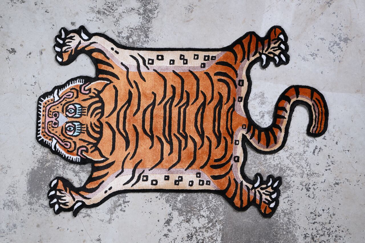 Tibetan Tiger Rug 《Sサイズ•シルク・オリジナル3・トラディショナルオレンジ348》チベタンタイガーラグ