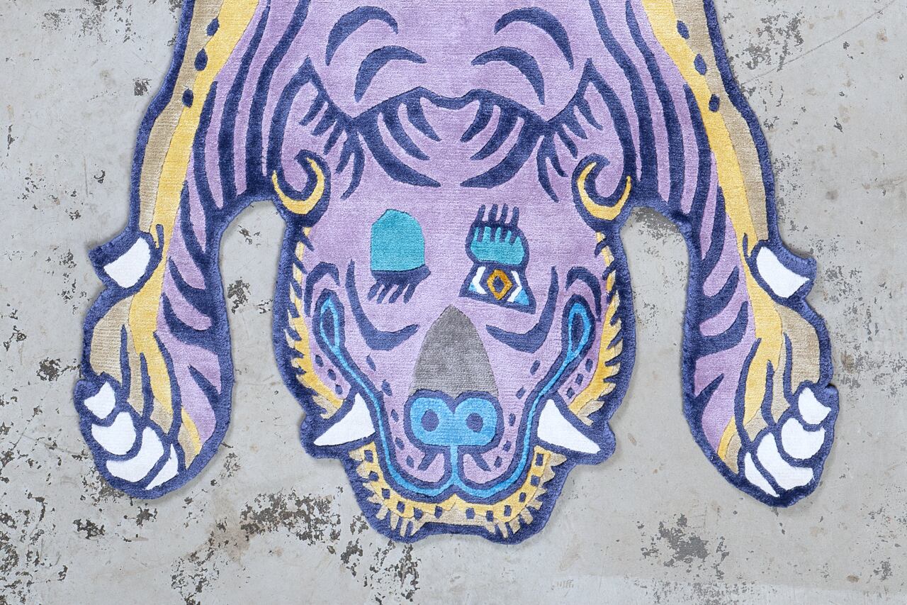 Tibetan Tiger Rug 《Mサイズ•シルク•オリジナル1•パープル170》チベタンタイガーラグ
