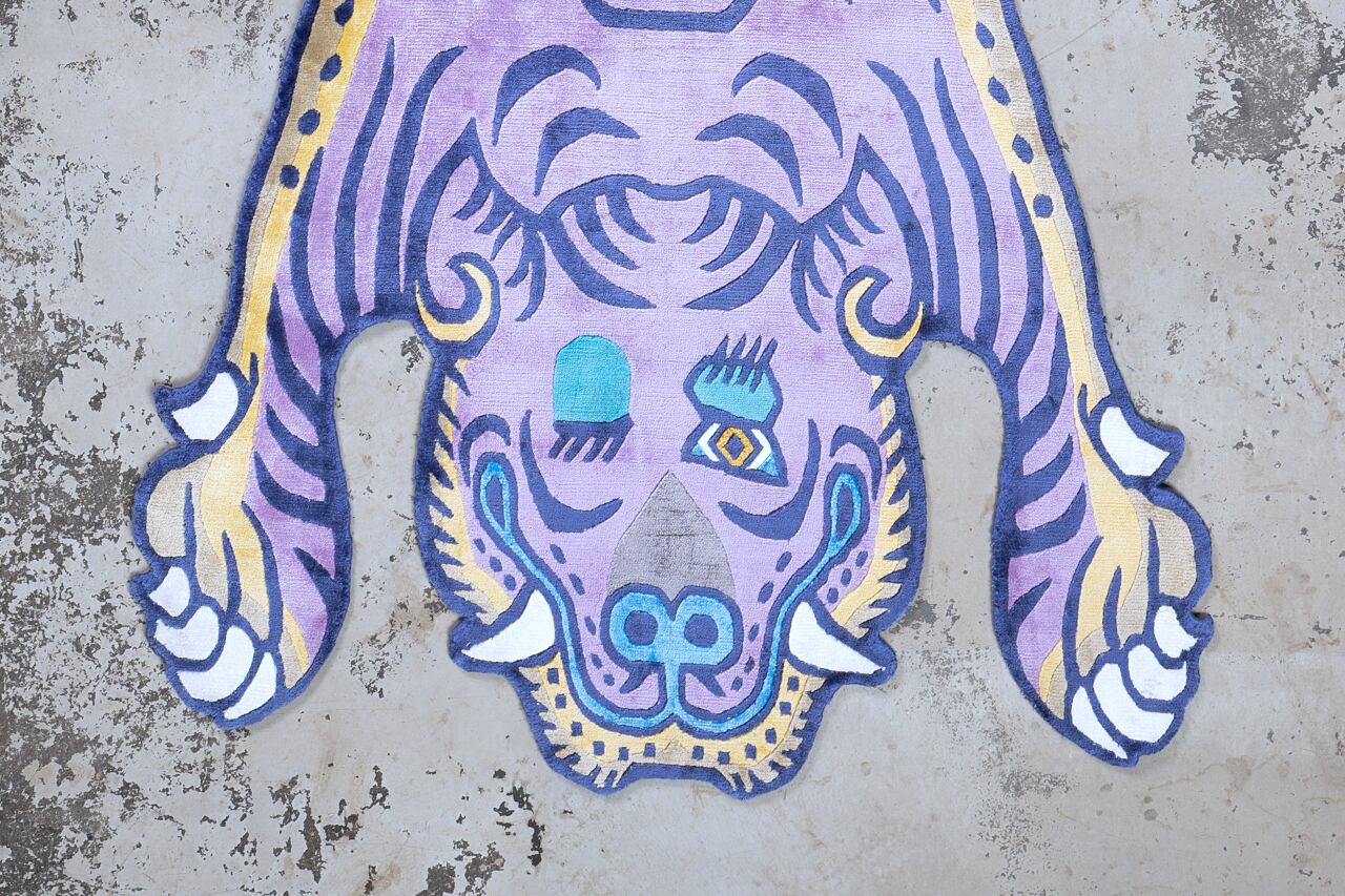 Tibetan Tiger Rug 《Lサイズ•シルク•オリジナル1•パープル182》チベタンタイガーラグ