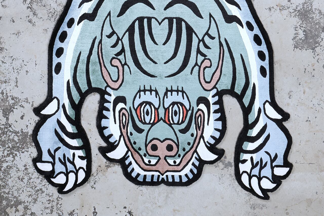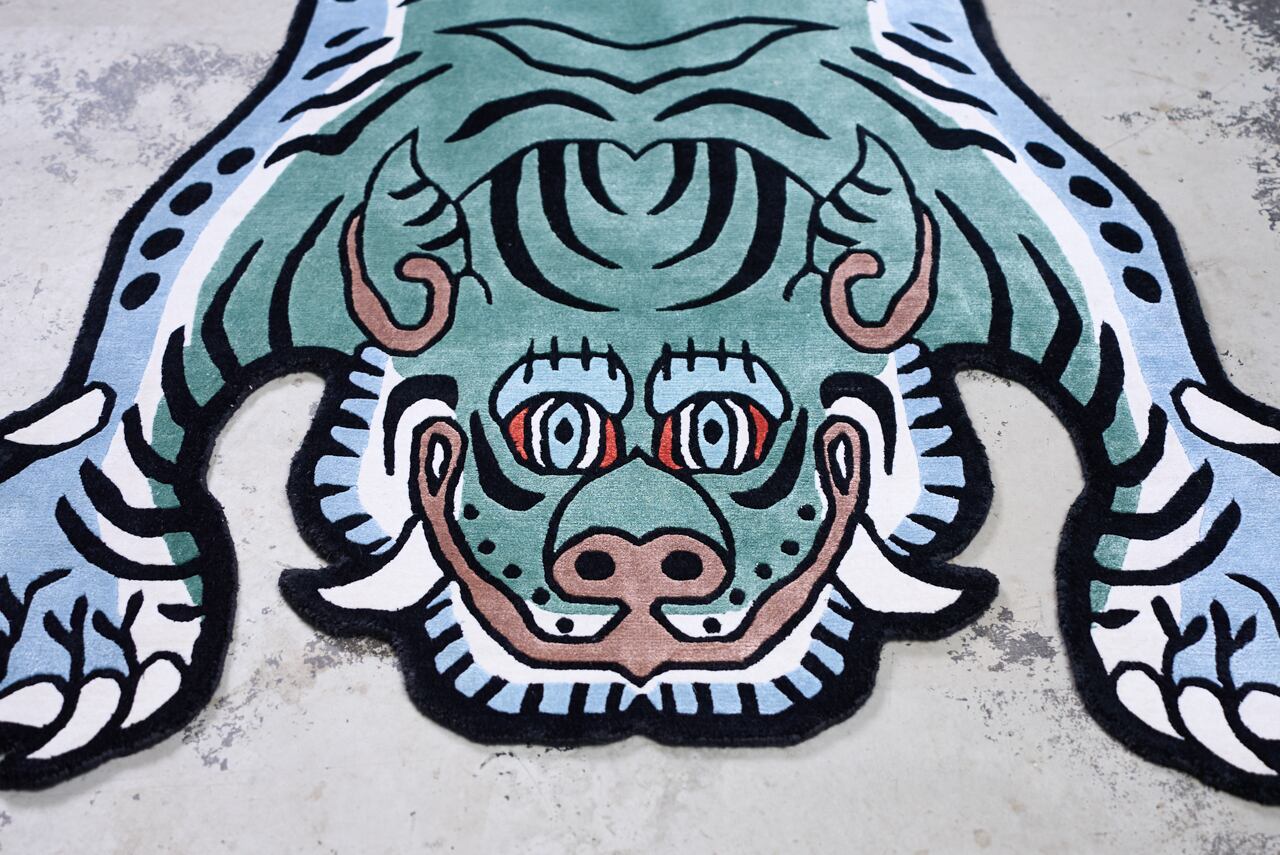 Tibetan Tiger Rug 《Lサイズ•シルク・オリジナル2・フォレストグリーン187》チベタンタイガーラグ