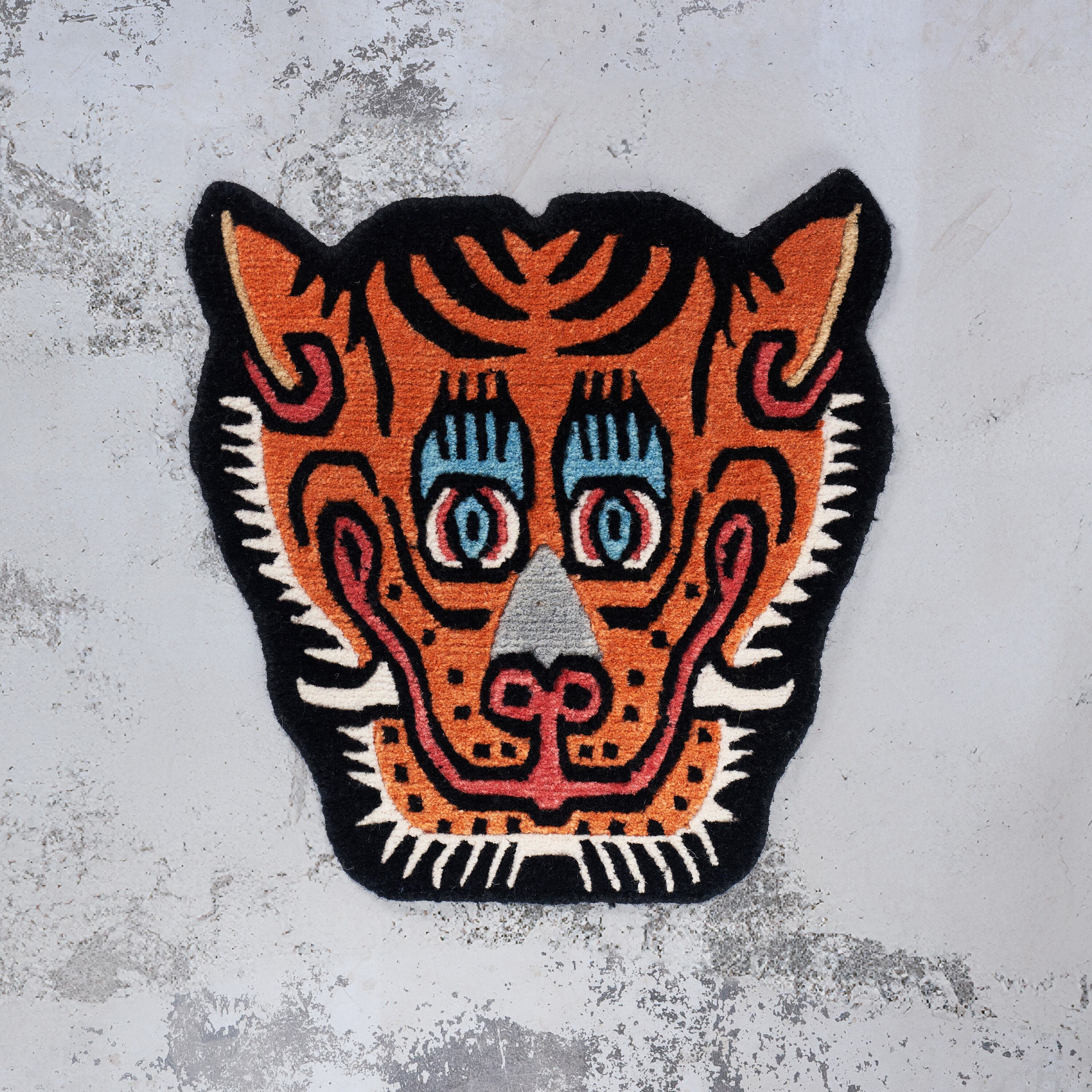 Tibetan Tiger Rug 《Only Face M・ウール・トラディショナルオレンジ002》チベタンタイガーラグ