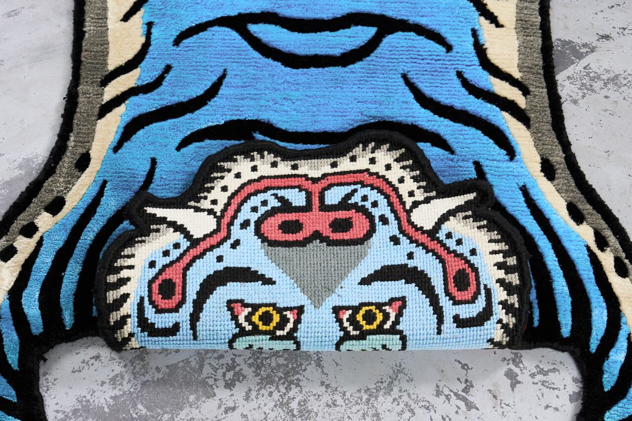 Tibetan Tiger Rug 《Sサイズ•シルク・オリジナル1•ブルー369》チベタンタイガーラグ