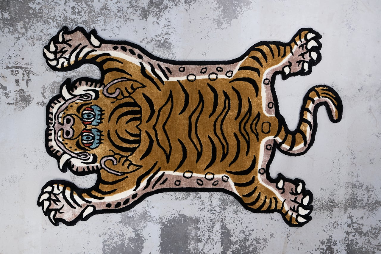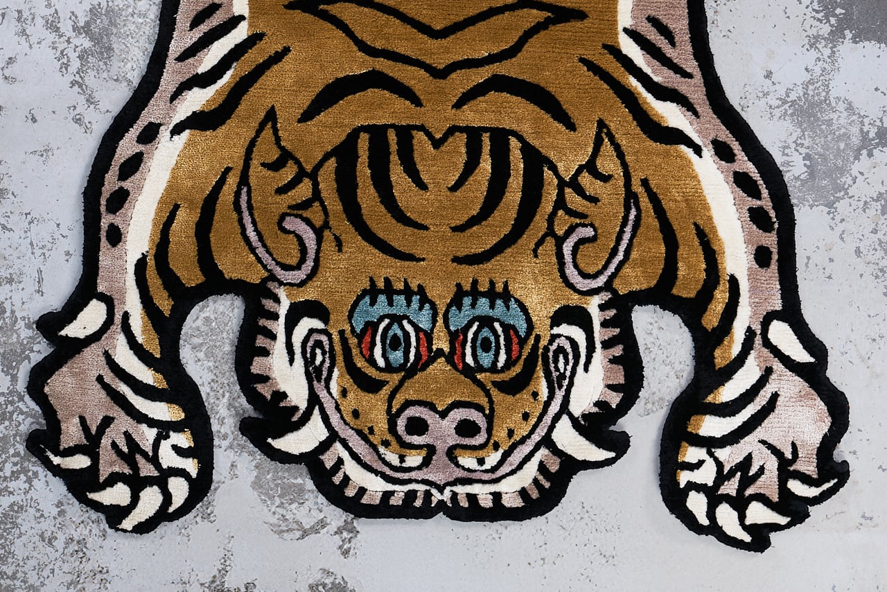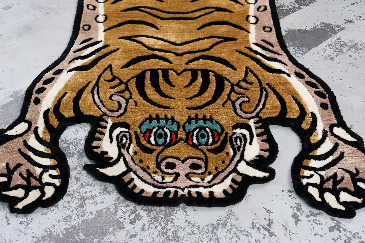 Tibetan Tiger Rug 《Sサイズ•シルク・オリジナル2・マスタードイエロー374》チベタンタイガーラグ