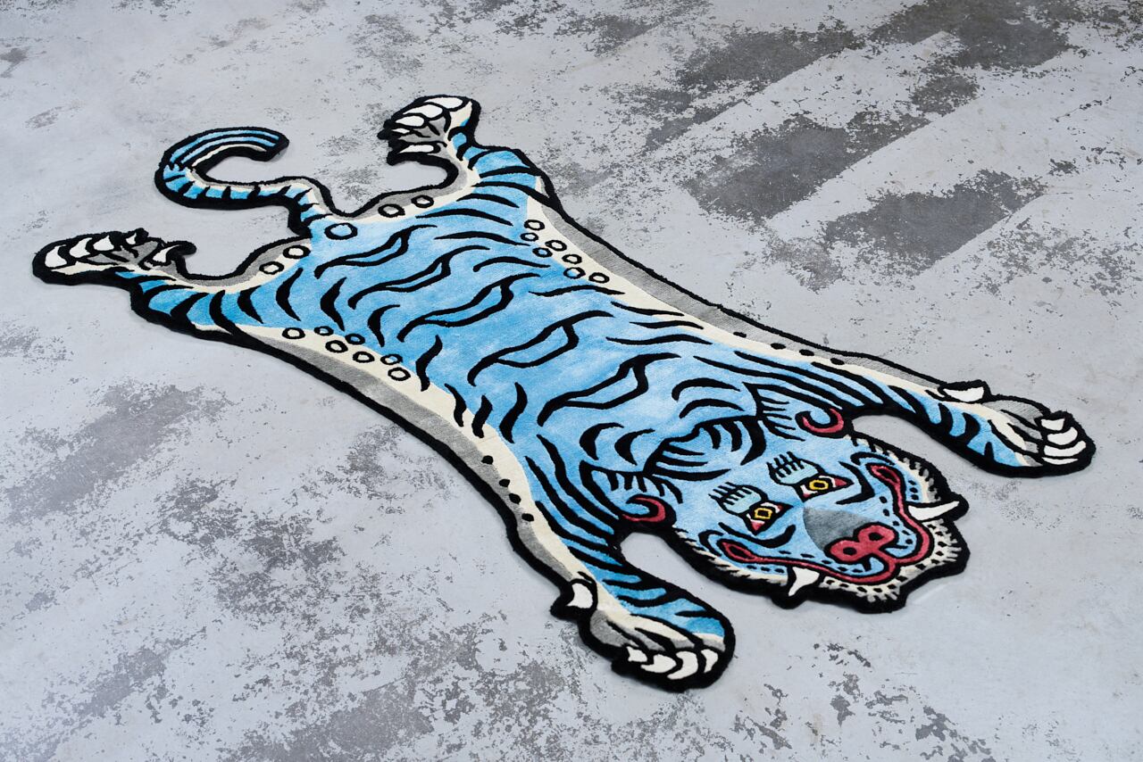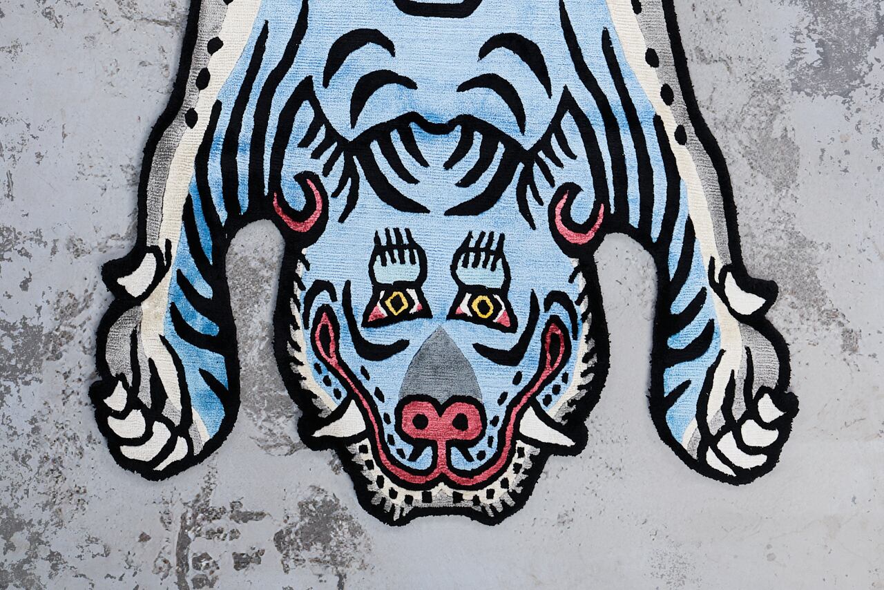 Tibetan Tiger Rug 《Mサイズ•シルク•オリジナル1•ブルー183》チベタンタイガーラグ