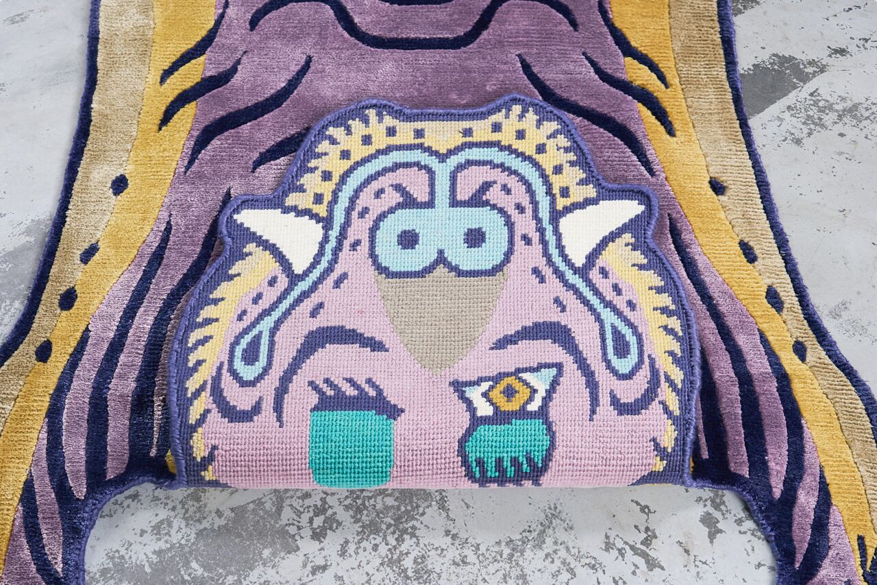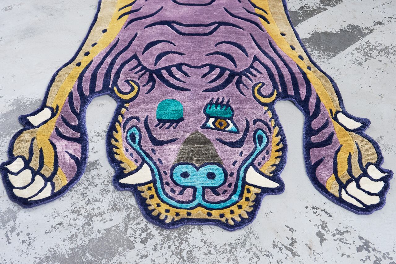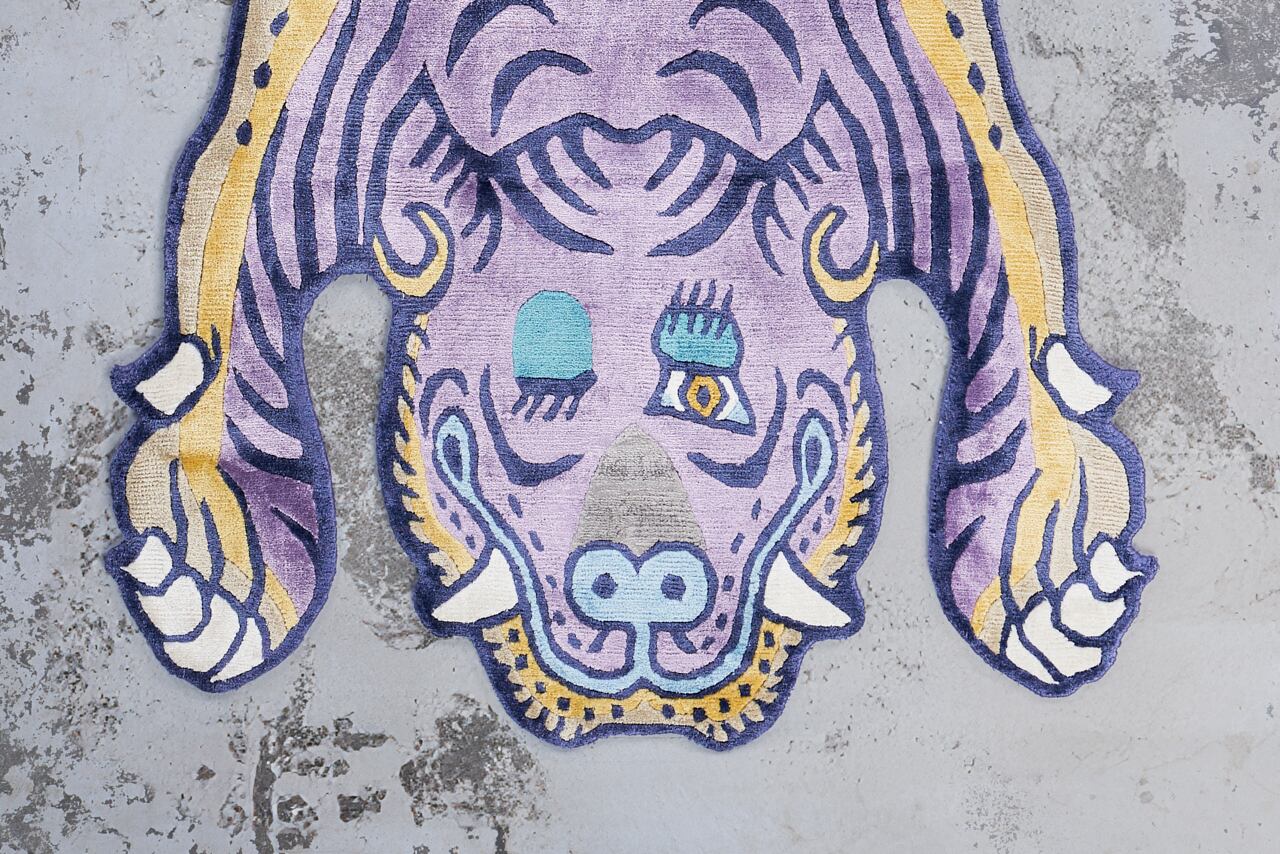 Tibetan Tiger Rug 《Mサイズ•シルク•オリジナル1•パープル185》チベタンタイガーラグ