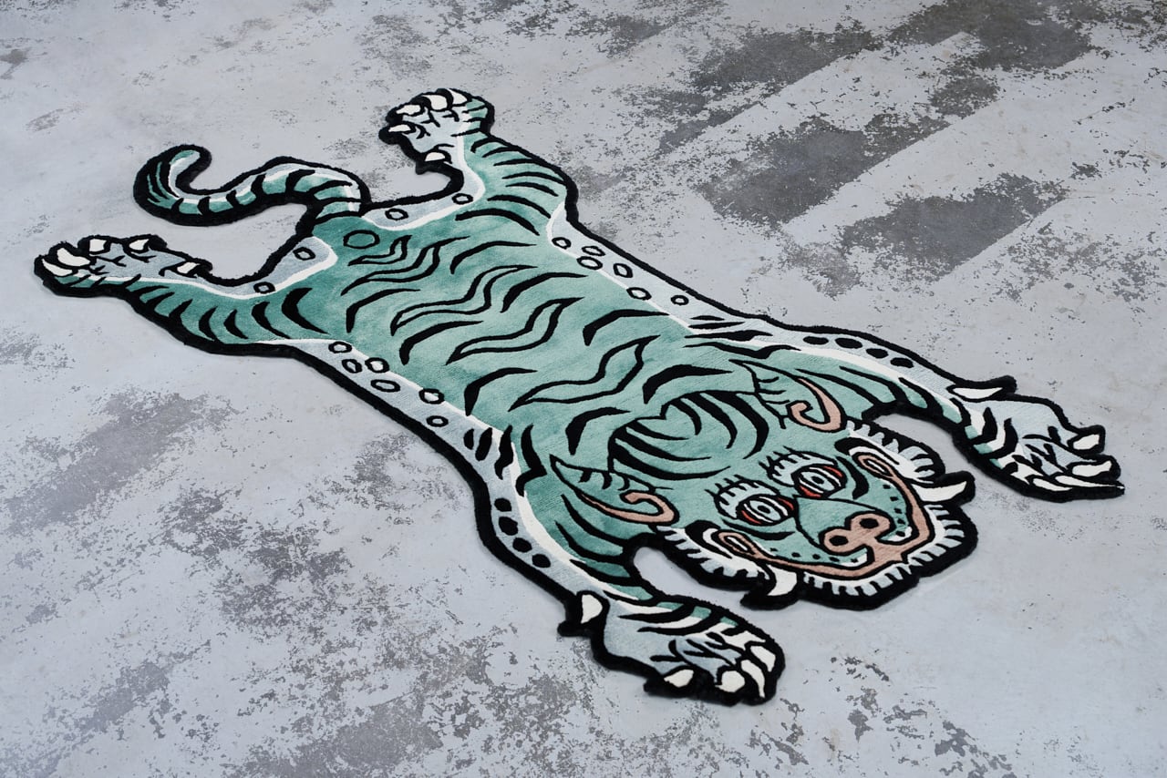 Tibetan Tiger Rug 《Mサイズ•シルク・オリジナル2・フォレストグリーン188》チベタンタイガーラグ