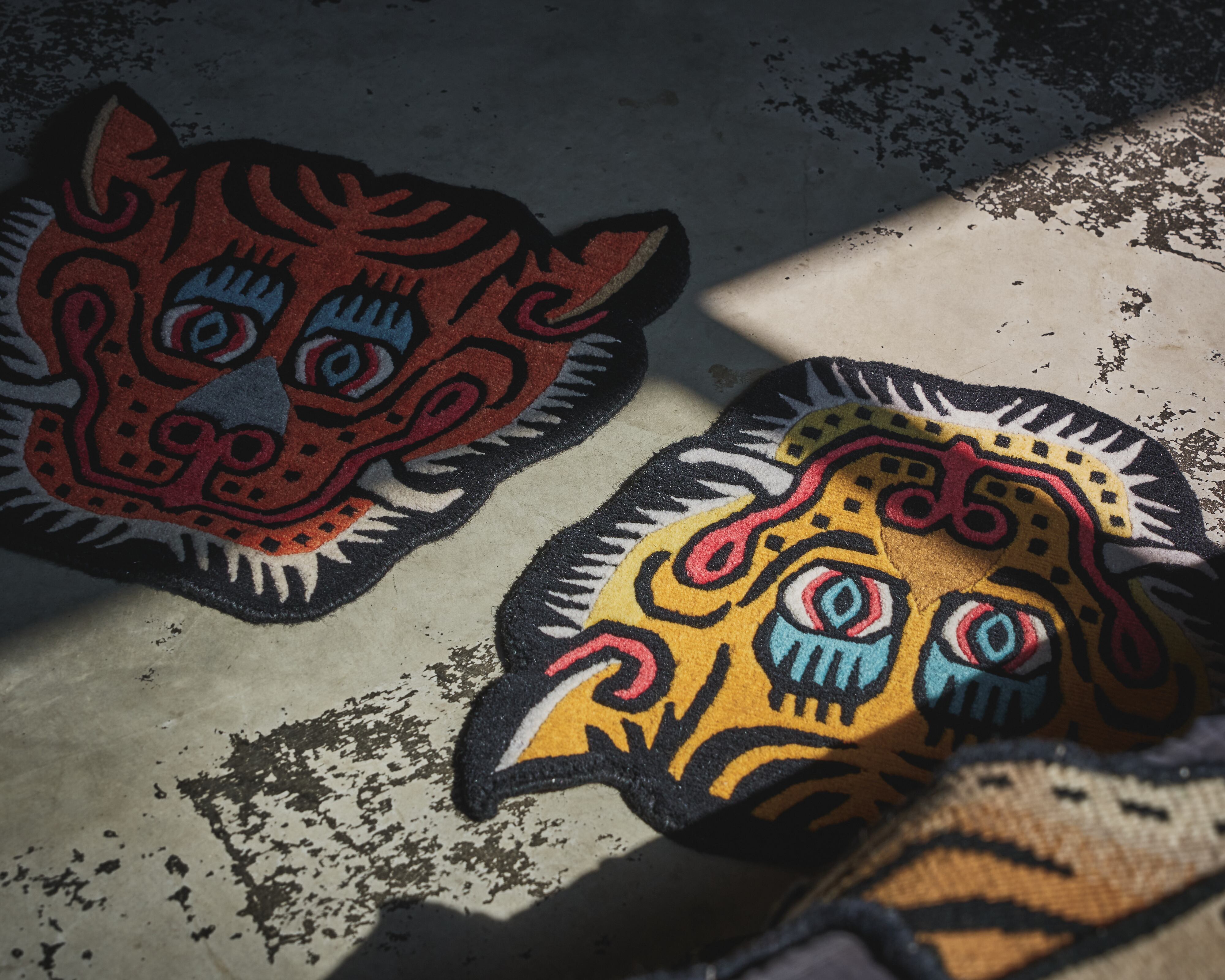 Tibetan Tiger Rug 《Only Face L・シルク・トラディショナルオレンジ002》チベタンタイガーラグ