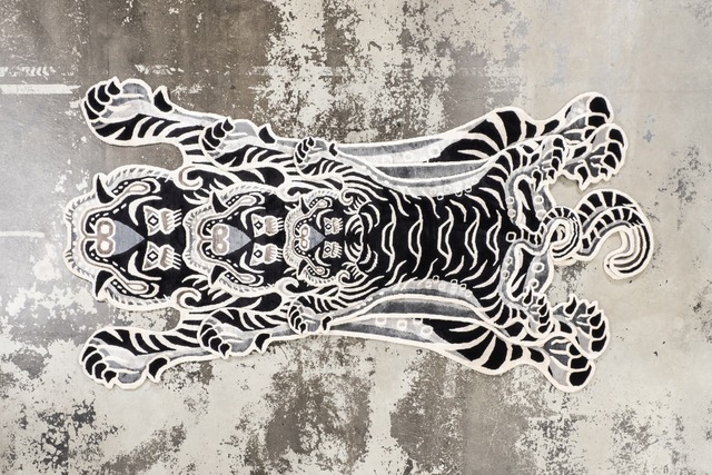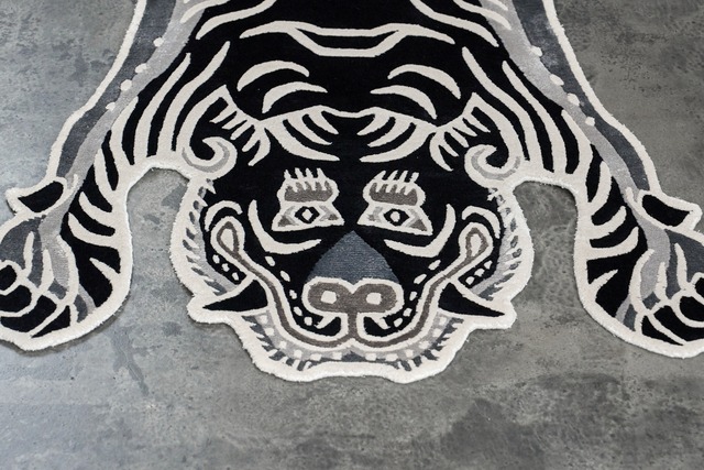 Tibetan Tiger Rug 《Mサイズ•シルク•オリジナル1•モノクロ197》チベタンタイガーラグ
