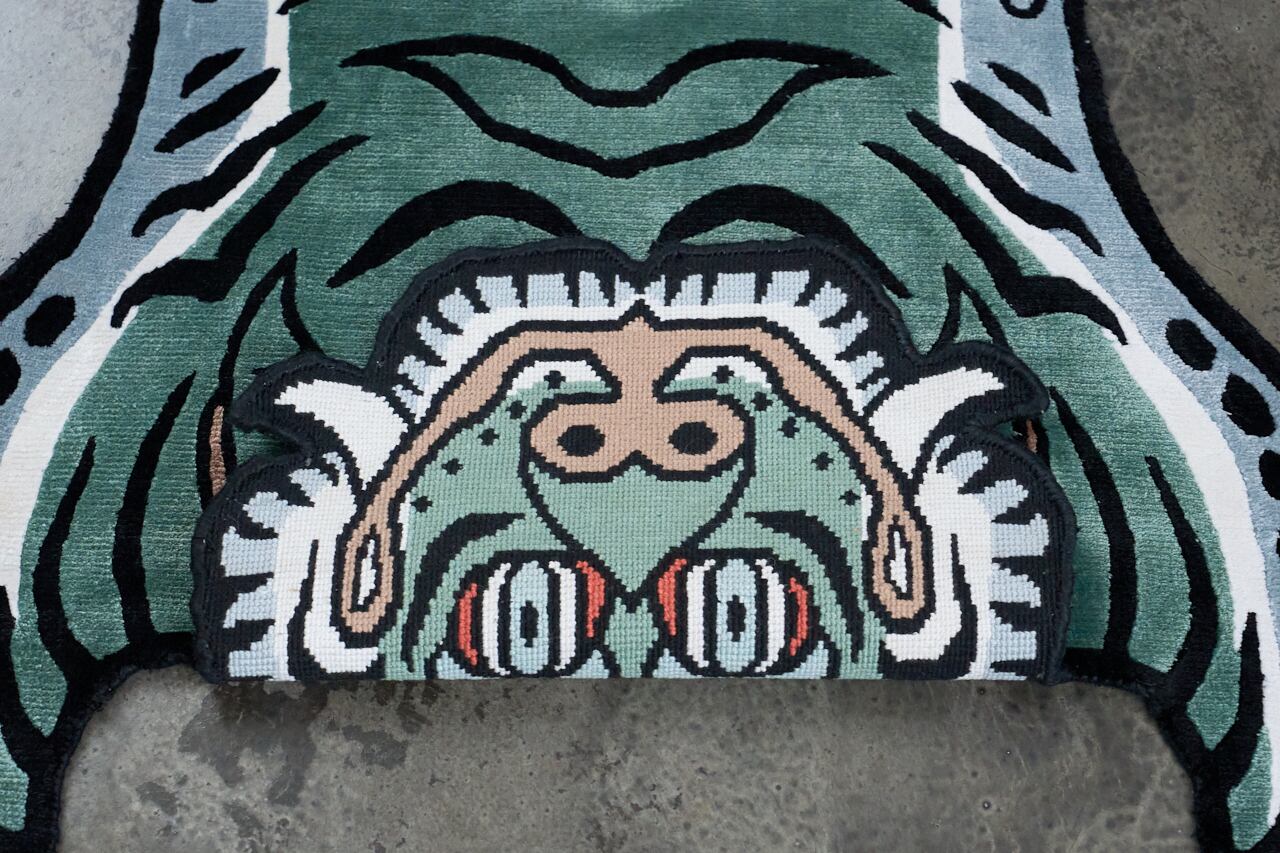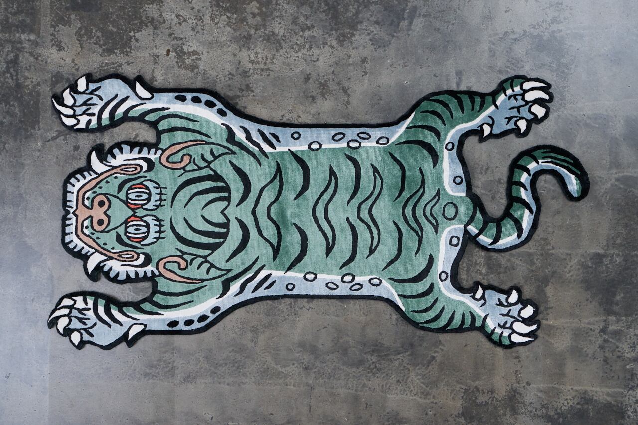 Tibetan Tiger Rug 《Mサイズ•シルク・オリジナル2・フォレストグリーン203》チベタンタイガーラグ