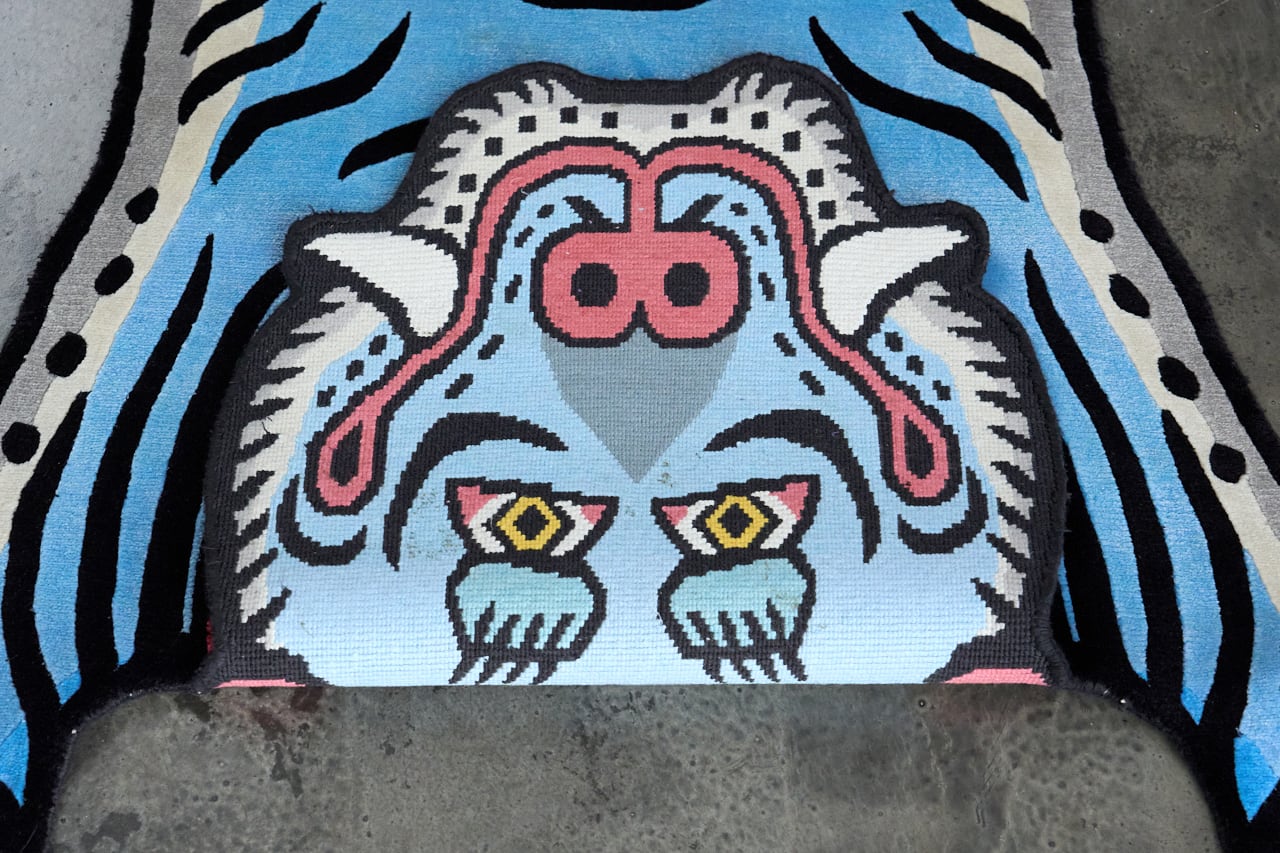 Tibetan Tiger Rug 《Lサイズ•シルク•オリジナル1•ブルー204》チベタンタイガーラグ